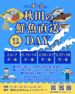 【赤坂開催】2月の木金は秋田の地魚直送DAY