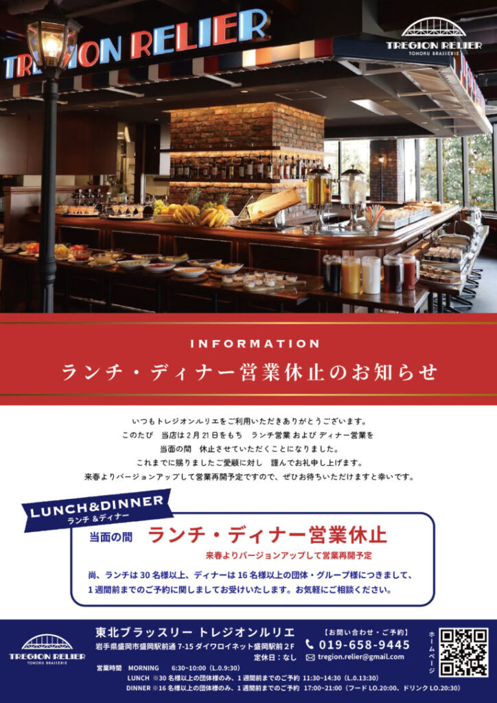 このたび、当店は2月22日をもちランチ営業を当面の間休止させていただくことになりました。